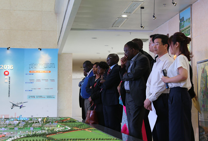 6月3日下午, 赞比亚内阁秘书姆西斯卡代表团一行到航空港实验区考察。郑州航空港实验区管委会副主任万正峰陪同考察。